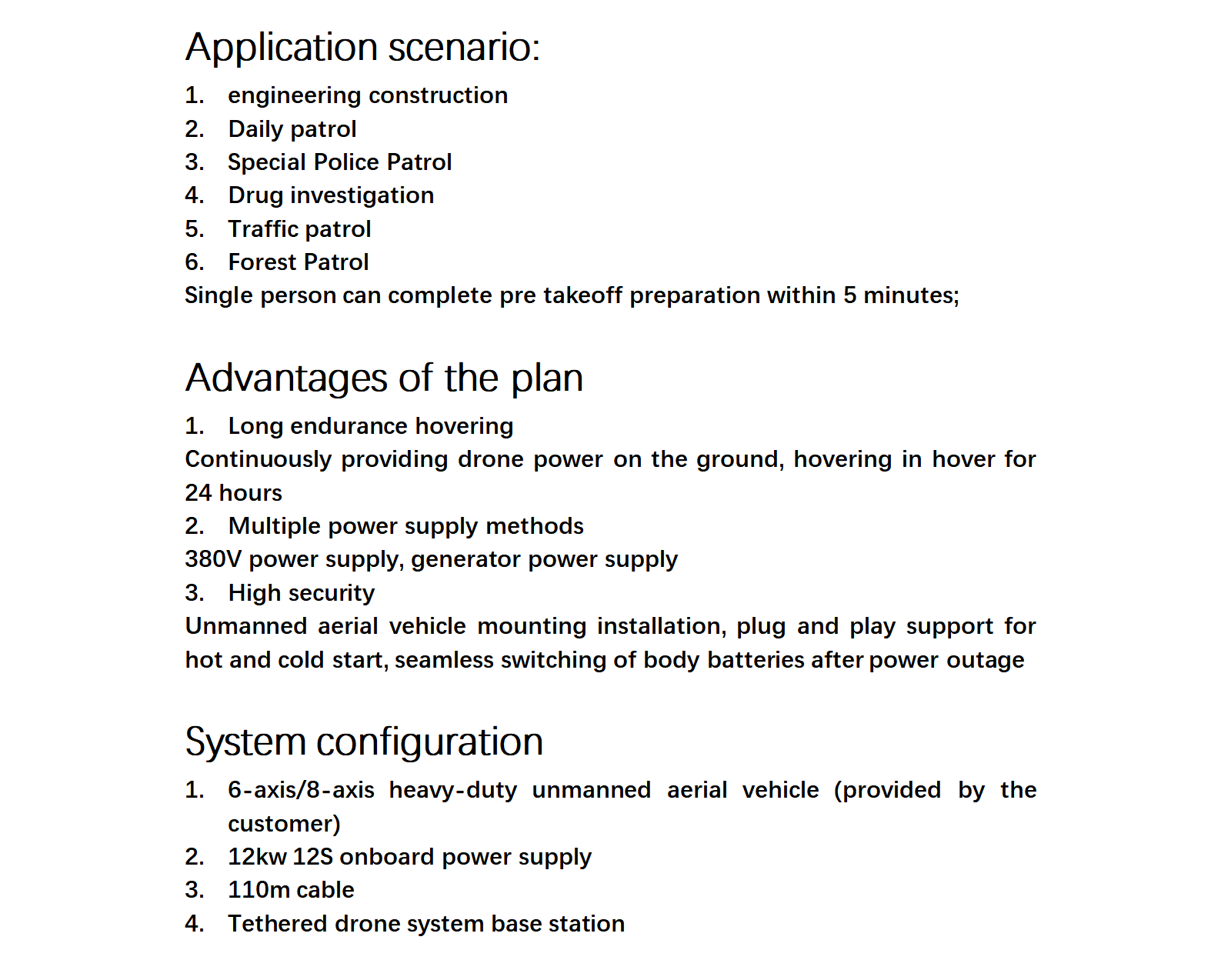 12KW 12S Tethered drone solution